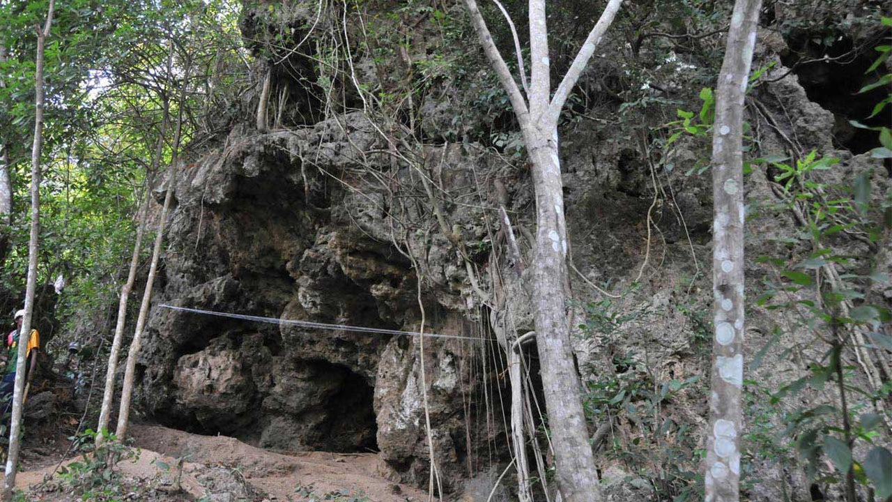 The cave measures approximately 15 m (49 ft) high, 18 m (59 ft) wide, and 25 m (82 ft) in length, totaling the internal cave area to 6,800 m3 (240,000 cu ft). Accessing the cave involves a 400 m (1,300 ft) hike from Sudagala, and an additional 50 m (160 ft) climb to reach the cave entrance. Approximately 30 m (98 ft) from the cave is another partially submerged cave, which is accessible after a 20 m (66 ft) swim.