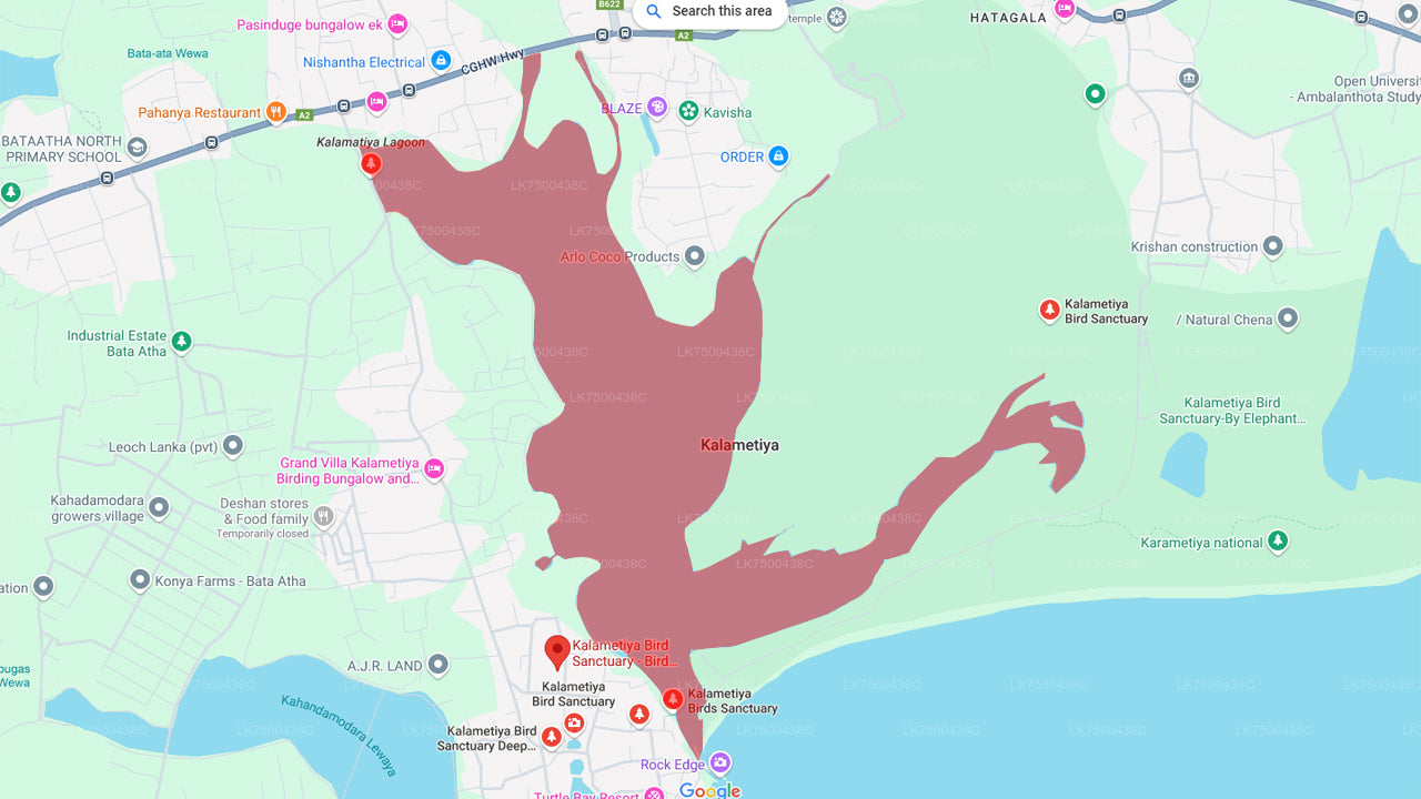 (Артикул: LK7500438C) Каламетия — прибрежная водно-болотная зона с особенно богатым биологическим разнообразием, расположенная на живописном юго-восточном побережье Шри-Ланки, в округе Хамбантота. Вместе с Рекавой и Уссангодой она образует район, известный как «Рук». Это прибрежный пояс необычайной красоты, усеянный многочисленными заливами, бухтами, лагунами, скалистыми обнажениями и песчаными пляжами, простирающийся примерно от Тангаллы до Хамбантоты.