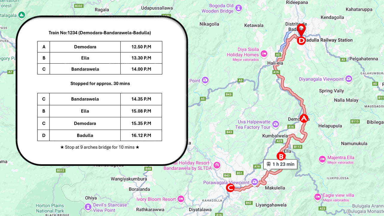 Experience the breathtaking beauty of Sri Lanka's hill country aboard the Calypso Tourist Train Ride. Train No:1232 (Badulla - Demodara) and Train No:1234 (Demodara - Badulla) offer a scenic journey through lush tea estates, misty mountains, and iconic bridges like the Nine Arches. With panoramic windows and a relaxed pace, this ride immerses travelers in nature’s charm, making it a must-do experience for nature lovers and photography enthusiasts exploring the island’s heartland.