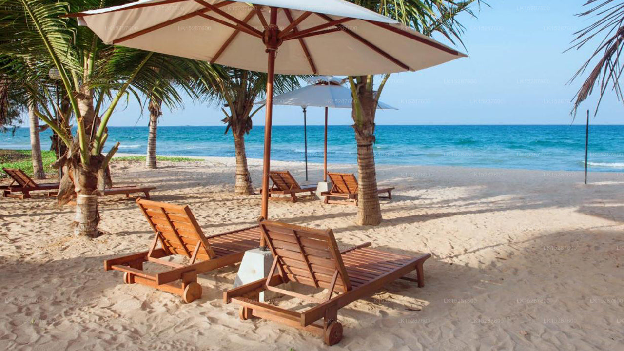 Situated in Nilaveli, the hotel is just steps from the pristine sandy beach and tranquil turquoise waters. Surrounded by swaying palms and a laid-back village atmosphere, it combines serene beachfront access with proximity to local shops and harbors.