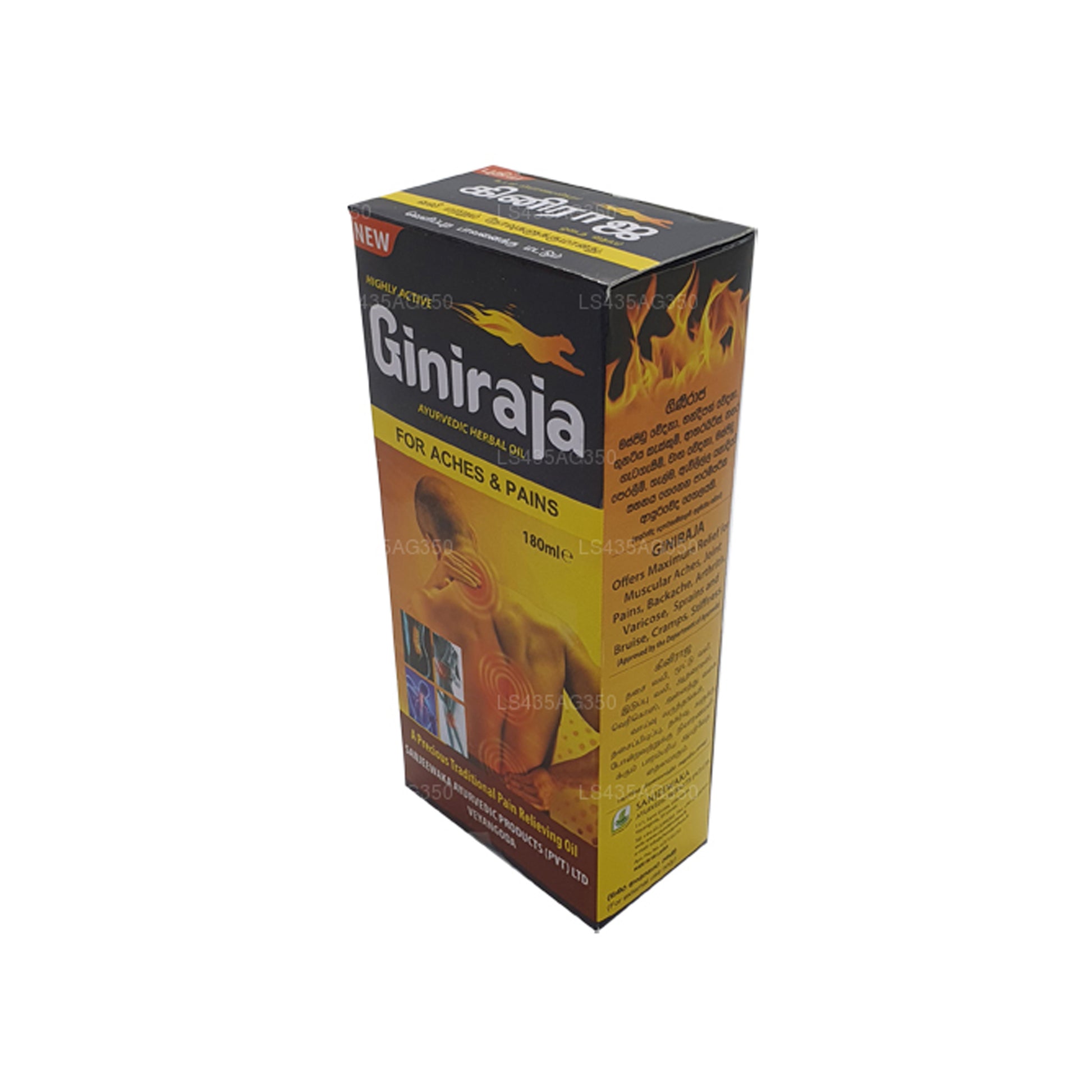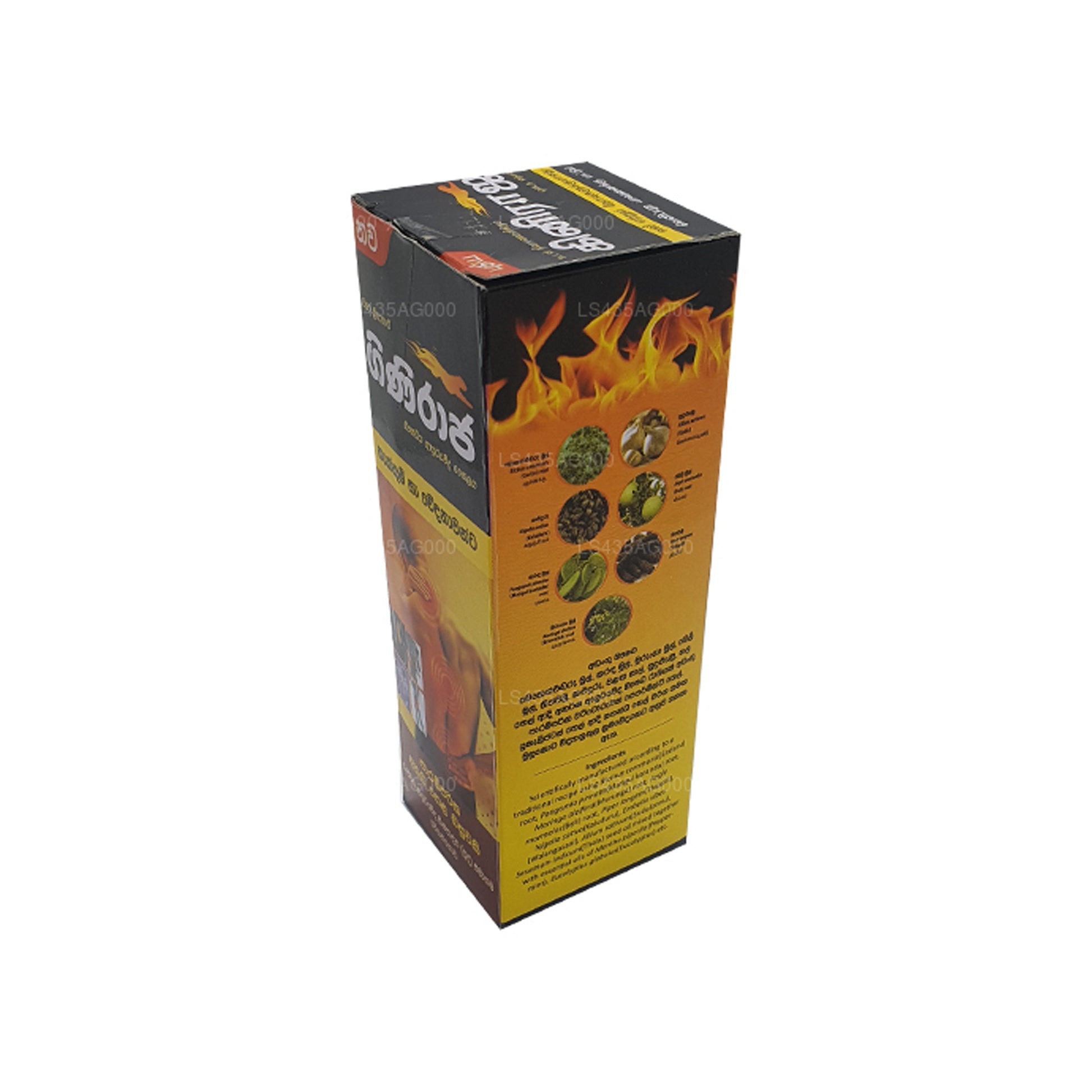 .Обезболивающее травяное масло Chandanalepa Giniraja было изготовлено с использованием смеси натуральных трав и растительных экстрактов, включая корень Icinus communis (Endaru), корень Pongamia pinnata (Mangul karanda), корень Moringa oleifera (Murunga), корень Eagle marmelos (Beli), Pippili longum (Thippili), Nigella sativa (Kaluduru)), масло семян Embelia ribes (Walangasaal), Allium sativum (чеснок), масло семян Sesamum indicum (тала, кунжут), смешанное с эфирными маслами Mentha piperita (мята перечная), Eucalyptus globulus (эвкалипт) и т. д. Обратите внимание, что это масло предназначено для наружного применения используйте только, и при использовании вы должны следовать инструкциям, прилагаемым к коробке.