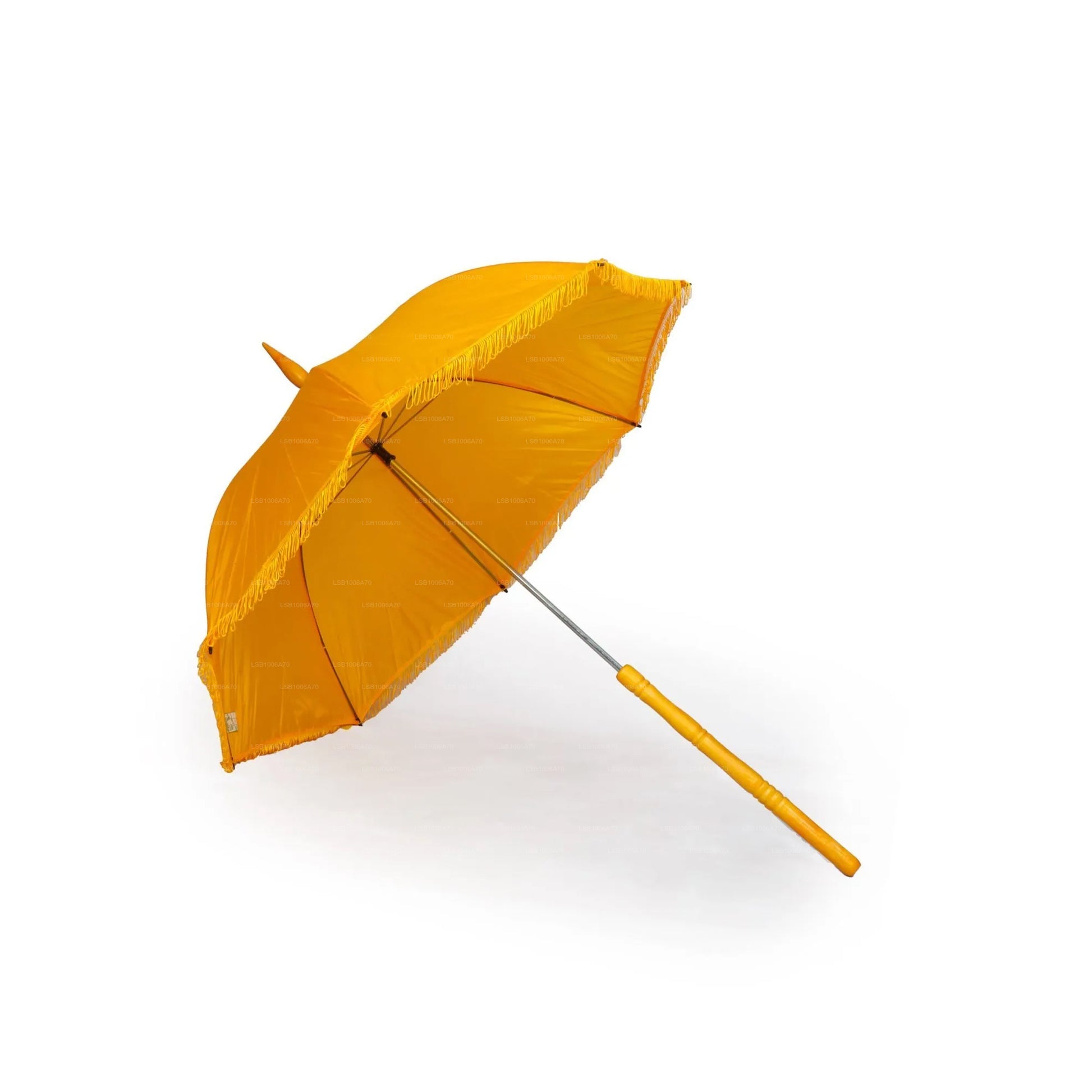 Siyarata Yellow Pooja Muthu Kuda is a vibrant ceremonial umbrella made from premium taffeta fabric, specially designed for religious and cultural events. Its bright yellow hue symbolizes prosperity and blessings, making it a meaningful choice for temple offerings, processions, and pooja rituals. Crafted with care for durability and elegance, this umbrella adds a touch of tradition and reverence to any sacred occasion.