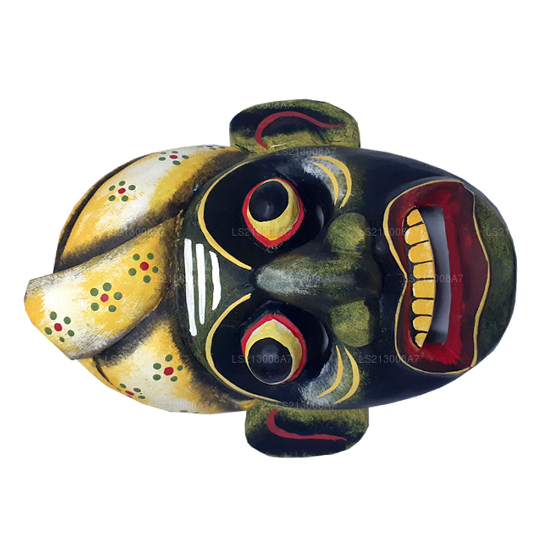 и отражает глубоко укоренившуюся культурную символику.Каждая маска уникально вырезана вручную и расписана вручную, поэтому каждое изделие немного отличается от представленного на изображении — это подлинная черта традиционного шри-ланкийского мастерства. Маска Демала Санния, используемая в лечебных, религиозных ритуалах и обрядах экзорцизма, в частности в таких спектаклях, как «Санни Якума», играет важнейшую роль в избавлении от злобных духов и восстановлении духовного и физического благополучия. Помимо ритуальной функции, она также служит мощным декоративным украшением, воплощающим наследие и художественное мастерство ланкийского фольклора