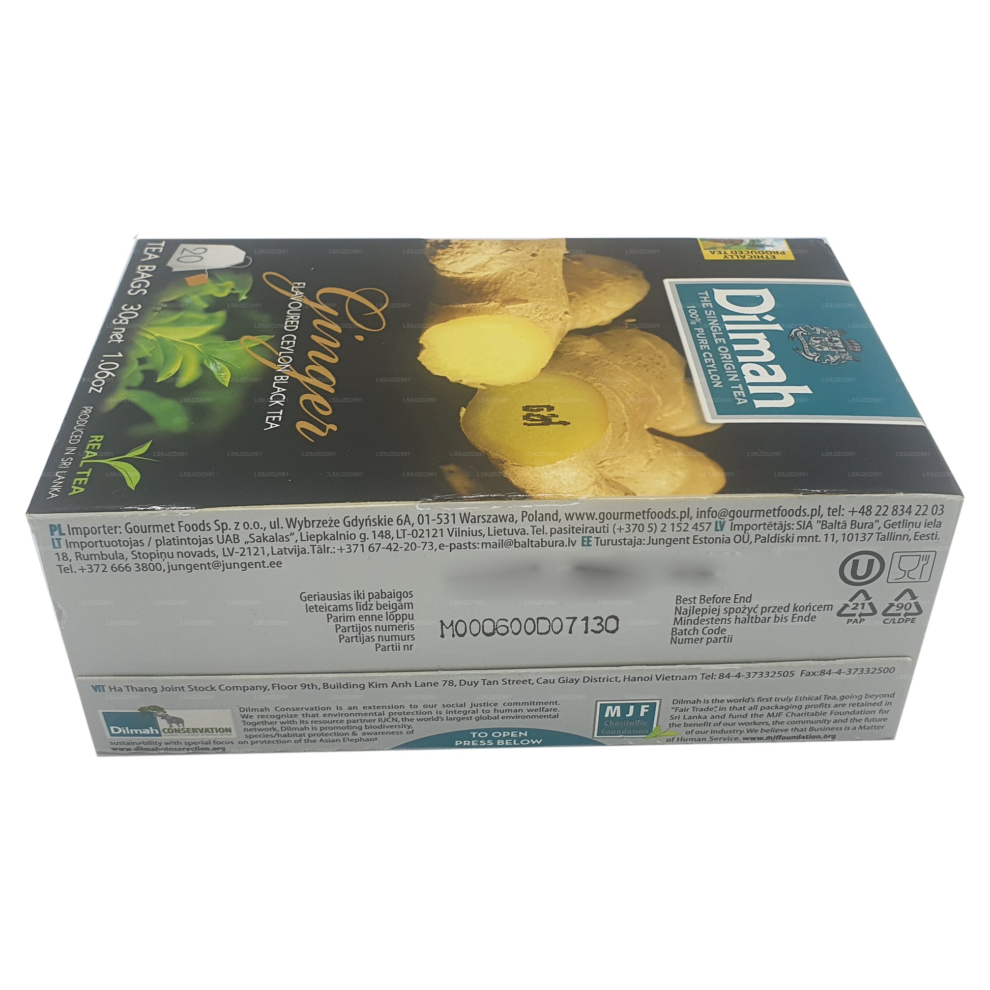 (Артикул: LS9J2D2991) Цейлонский черный чай со вкусом имбиря для естественного согревающего и бодрящего напитка. Высоковыращенный цейлонский чай средней консистенции, усиленный согревающим ароматом и вкусом пряного имбиря. Комбинация двух трав является древней, основанной на аюрведическом тонике, где полезные свойства чая сочетаются с преимуществами имбиря для получения игристого, полностью натурального горячего чая. Этот ароматизированный цейлонский черный чай из линейки чая Dilmah Fun Tea состоит из 20 чайных пакетиков.