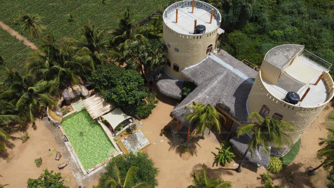 Dune Towers is a charming beachfront guesthouse located on Alankuda Beach in Kalpitiya, Sri Lanka. Surrounded by tranquil sand dunes and lush coconut plantations, it offers comfortable accommodations with stunning garden views. Guests can enjoy a beautiful outdoor pool, private beach access, and a range of exciting excursions, including dolphin watching and wildlife safaris, for an unforgettable experience.