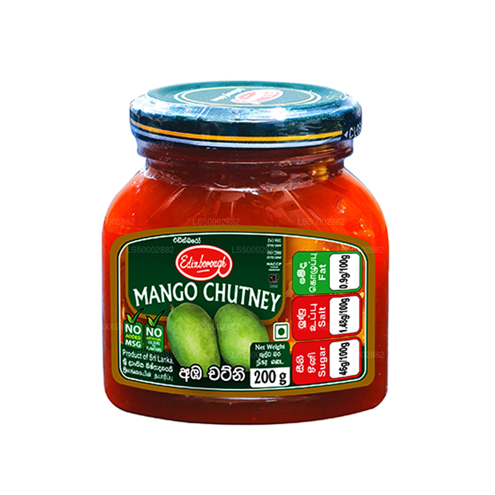 Состав: кусочки манго, сахар, вода, лодированная поваренная соль, порошок чили, ксантановая камедь, уксусная кислота (INS 260), имбирь, чеснок, гвоздичный порошок, специи и разрешенный пищевой консервант (INS 211).