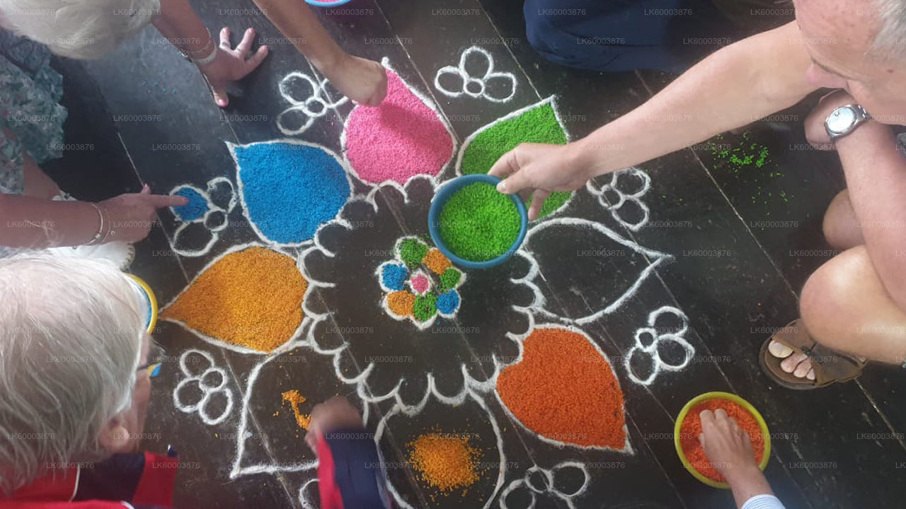 Откройте для себя богатую тамильскую культуру в живописной деревне Кандапола недалеко от Нувары Элии. Познакомьтесь с местными фермерами и жителями деревни, чтобы узнать об их традициях и повседневной жизни, при этом надевая яркую тамильскую одежду. Наслаждайтесь традиционной музыкой, попробуйте вкуснейший тамильский ужин с досаи, ваде, идли и чаем Яара из чайных плантаций и откройте для себя искусство создания мандал, создавая свой собственный дизайн и изучая его духовное значение. Этот уникальный культурный опыт сочетает в себе наследие, традиции и потрясающую красоту гор Шри-Ланки.