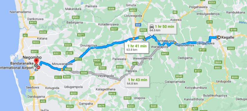 - Pick up within the city limits of Kegalle and drop-off at Colombo Airport (CMB).