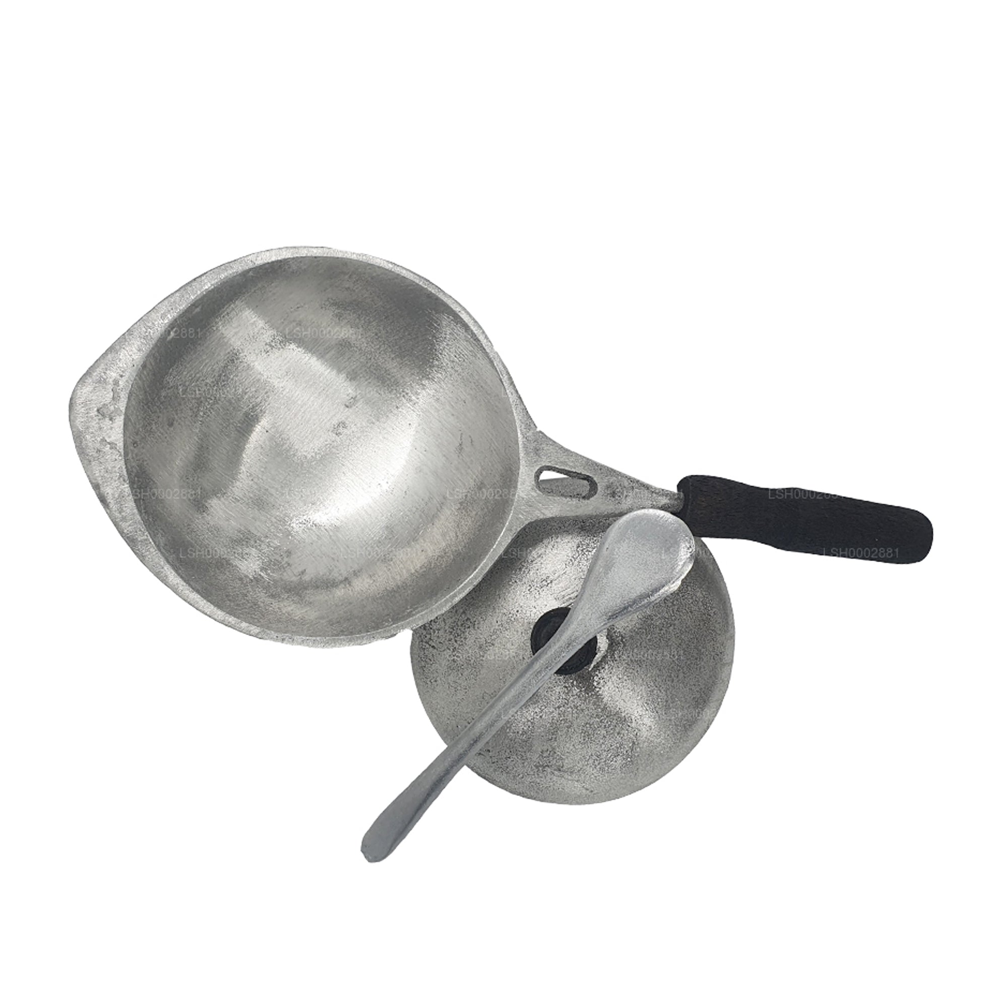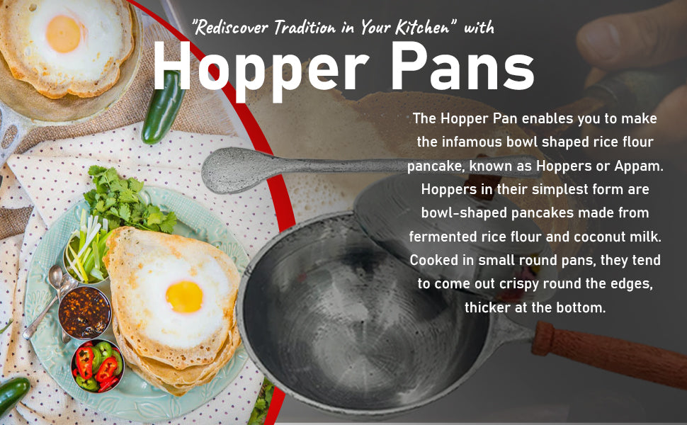 Шри-ланкийский Хоппер — это тип блинчика в форме чаши, приготовленного по простому, но древнему рецепту из ферментированной рисовой муки и кокосового молока. Также известный как Аппам в некоторых других культурах, хопперы на протяжении веков были основным блюдом в домах Шри-Ланки и некоторых азиатских странах. Сковорода из алюминия Lakpura с крышкой оснащена удобной ручкой и лопаткой, что позволяет легко наливать рисовую смесь и вынимать хрустящий блинчик, как профессионал. Смесь хоппера стекает в центр, делая его толще на дне и хрустящим по краям. Хопперы подаются с острыми карри, луковыми и сушеными рыбными самболами, а также как яичные хопперы, которые являются фаворитом среди местных жителей.
