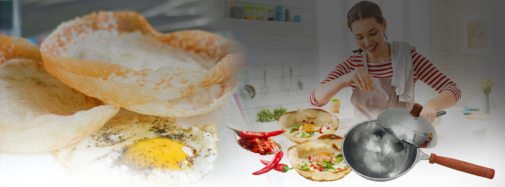 На Шри-Ланке хопперы — это тонкие блинчики в форме чаши, названные в честь сковороды, которая придаёт им такую форму. Конечно же, эти хрустящие блюдца требуют начинки. Как только тесто начинает готовиться, повара разбивают на него целое яйцо и накрывают сковороду.