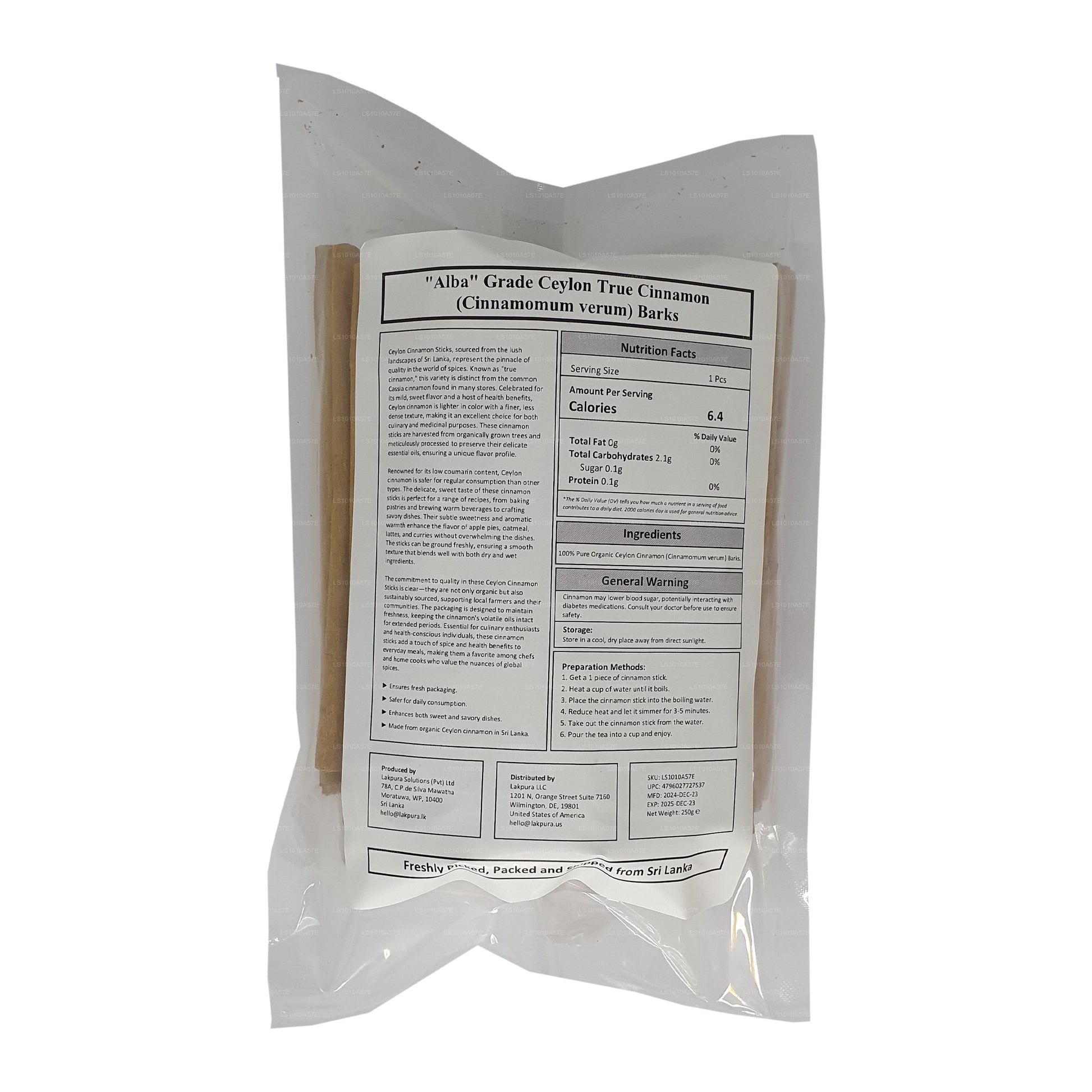 (Артикул: LS1010FD98) Тонкая, экзотическая, экстравагантная корица Lakpura Alba с богатым вкусом — поистине высококачественная специя. Это лучшая из лучших, и до сих пор на земле не было найдено ни одного сорта корицы, который мог бы превзойти корицу Альбы.