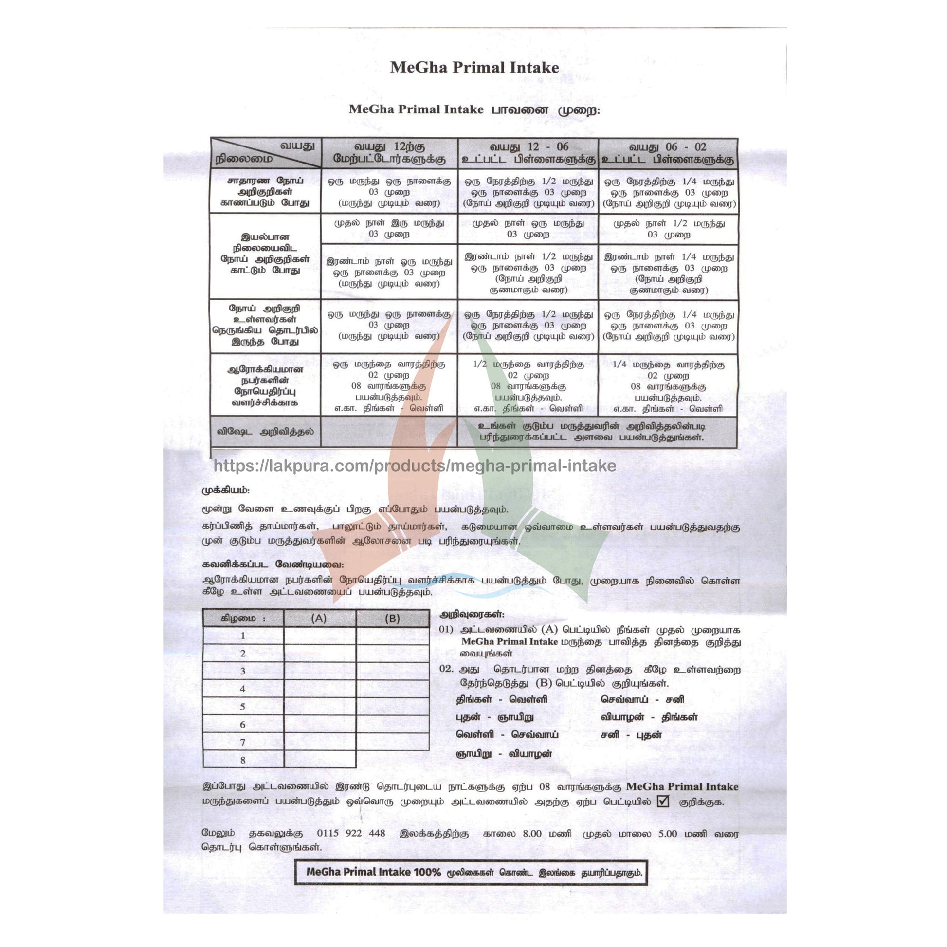 (Артикул: LS41304A56) MegHa Primal Entake — это 100% натуральная пищевая добавка, изобретенная для повышения иммунитета в организме человека и не содержащая искусственных красителей, ароматизаторов и консервантов. Он производится в Шри-Ланке на предприятии, сертифицированном по стандарту ISO 22000 и GMP. MegHa Primal Intake разработан с помощью разнообразной команды ученых и западных врачей, которые потратили часы на исследования.