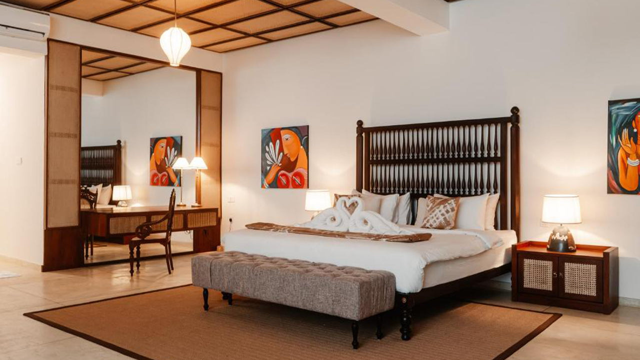 Accommodation:Mosvold Villa offers luxurious and comfortable accommodation with a blend of modern amenities and traditional Sri Lankan charm. The rooms are air-conditioned and designed to offer maximum comfort, featuring a private balcony or terrace with views of the garden, pool, or beach. Each room is well-appointed with a desk, kettle, fridge, minibar, safety deposit box, and a flat-screen TV. The private bathrooms are equipped with a bidet, and all rooms include bed linen and towels. Some rooms offer stunning views of the outdoor pool, enhancing the villa's relaxing ambiance.