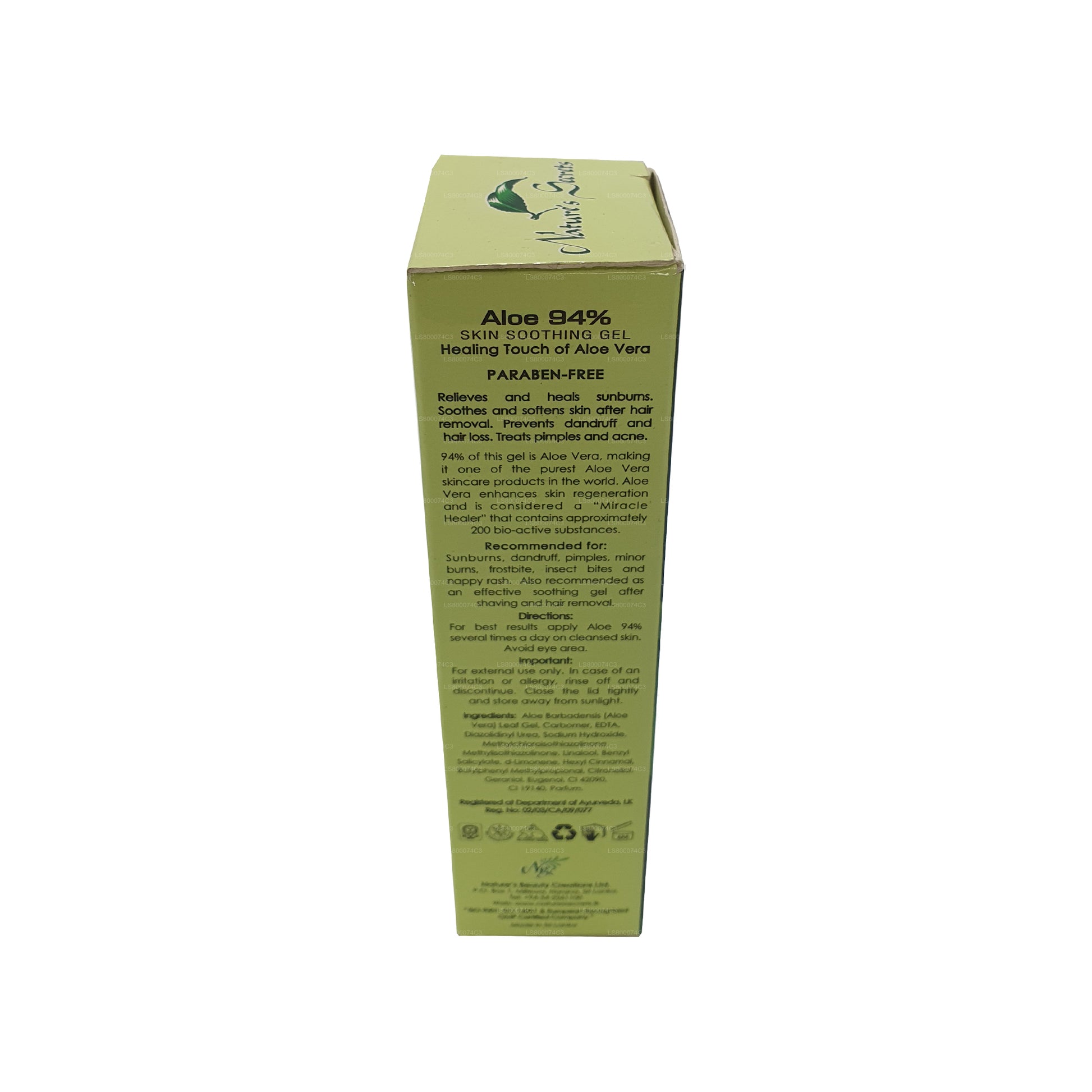 (Артикул: LS800074C3) Самый свежий и чистый продукт из алоэ вера в Шри-Ланке и один из самых чистых в мире. 94% продукта изготовлено из свежего геля алоэ вера, взятого непосредственно из сока (не сублимированного). Алоэ вера уже тысячи лет известно как чудодейственное средство для кожи, его целебные и регенерирующие свойства теперь хорошо изучены и задокументированы