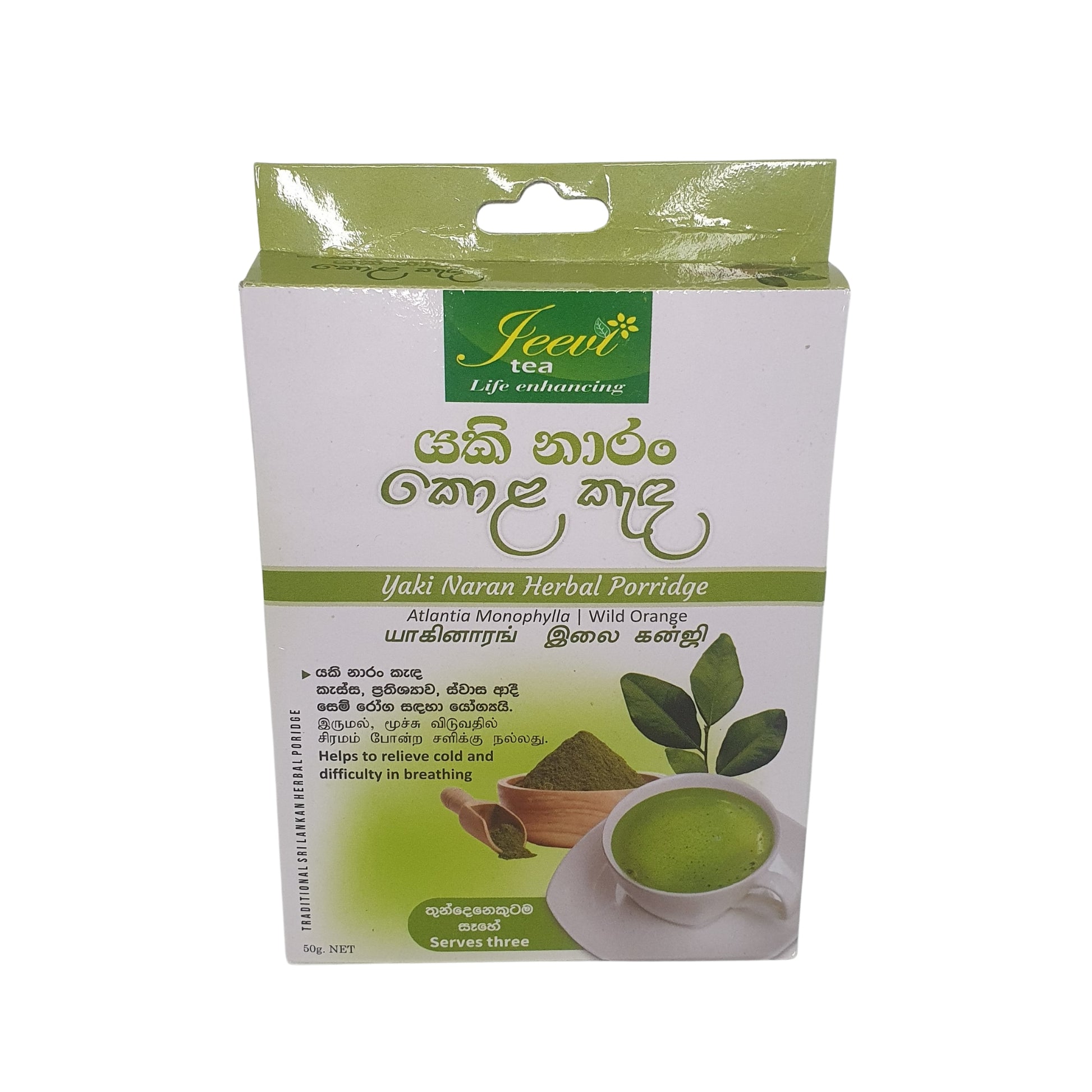 Jeevi Yaki Naran Kola Kenda (50g) изготовлен из листьев Yaki Naran и приготовлен по традиционному методу Шри-Ланки. Эта традиционная смесь широко используется в местных домохозяйствах, особенно благодаря своим естественным согревающим и успокаивающим свойствам. Каша имеет мягкий, землистый вкус и легко готовится, что делает её знакомым выбором для тех, кто любит традиционные травяные напитки Шри-Ланки. С заботой и подлинностью приготовленный продукт привносит в вашу повседневную жизнь атмосферу деревенских домашних средств.