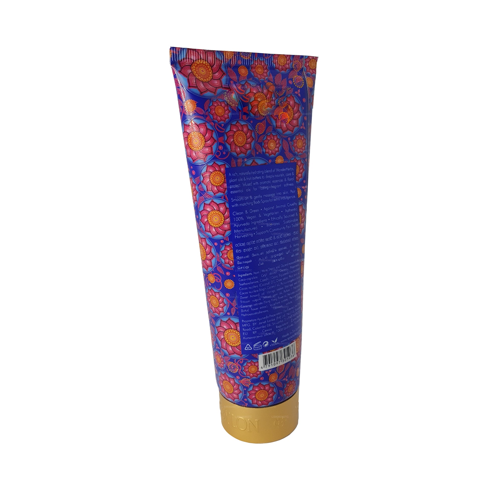 Питательный лосьон для рук и тела Spa Ceylon Royal Lotus — это роскошная натуральная увлажняющая смесь, разработанная для глубокого питания, защиты и смягчения кожи. Эта богатая формула, обогащенная чудо-травами, растительными маслами и фруктовыми маслами, восстанавливает утраченную влагу, делая кожу гладкой, эластичной и сияющей. Насыщенный успокаивающим ароматом королевского лотоса и цветочными эфирными маслами, он обладает стойким ароматом, поднимающим чувства. Идеально подходит для ежедневного применения, помогает восстановить баланс кожи, избавиться от сухости и сохранить сияющую шелковистую текстуру