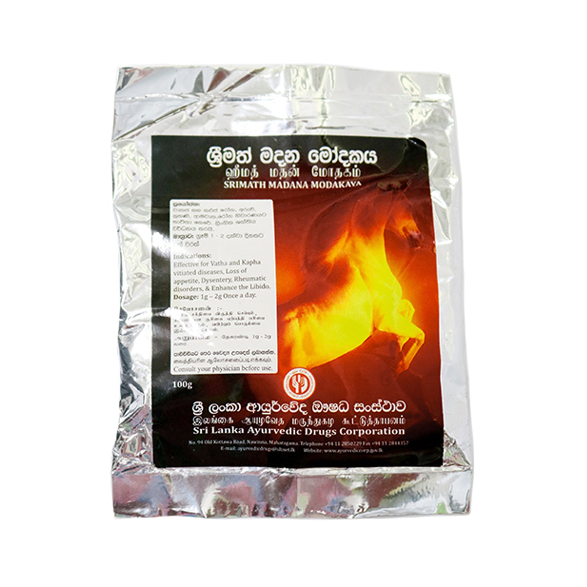 Это традиционное растительное лекарственное средство сочетает в себе такие ингредиенты, как Cannabis Sativa, Saussurea lappa и Zingiber officinale, среди прочего, для повышения сексуальной силы, аппетита и здоровья пищеварительной системы. Он также помогает снять отечность живота и лечить диспепсию. Рекомендуемая дозировка составляет от 20 до 30 зерен