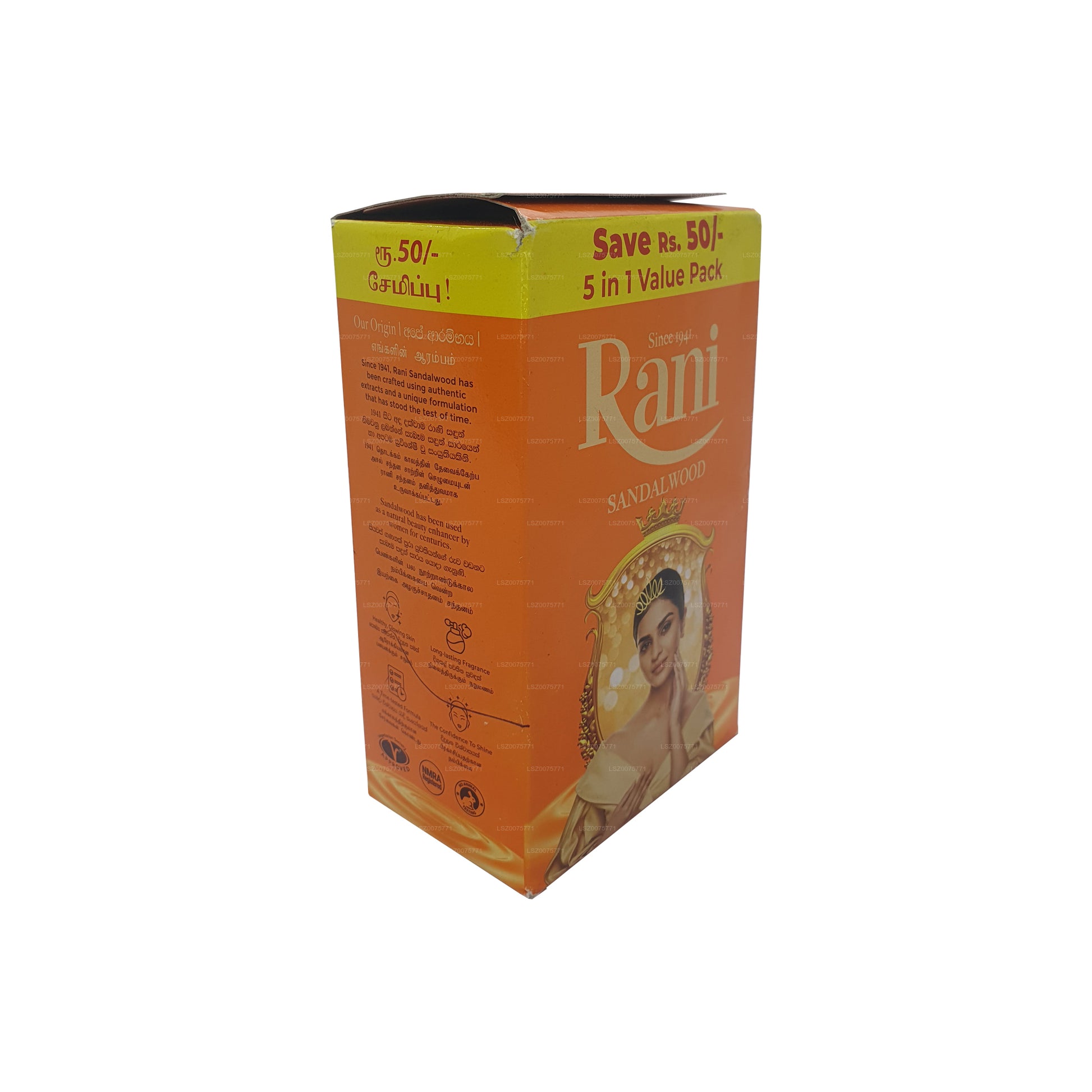 (Артикул: LKZ0075771) Оригинальное мыло Rani Sandalwood делает вашу кожу сияющей и сияющей. Мыло Rani Sandalwood является оригинальным продуктом Шри-Ланки с 1941 года. Сандаловое дерево стало секретом женской красоты, что мыло Queen of Beauty. Женщины, заботящиеся о красоте, всегда доверяют мылу Rani Sandalwood с его охлаждающим ароматом для ухода за кожей. Активный растительный ингредиент — масло сандалового дерева.