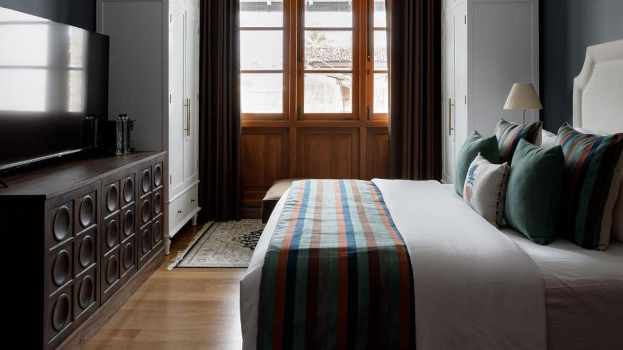 The Archives Galle Fort features elegant rooms that blend colonial-era style with modern comfort. Each room is thoughtfully designed with rich wooden furniture, plush bedding, and period features, creating a peaceful retreat after a day of sightseeing in Galle. Guests can enjoy views of the historic streets or the serene courtyard.