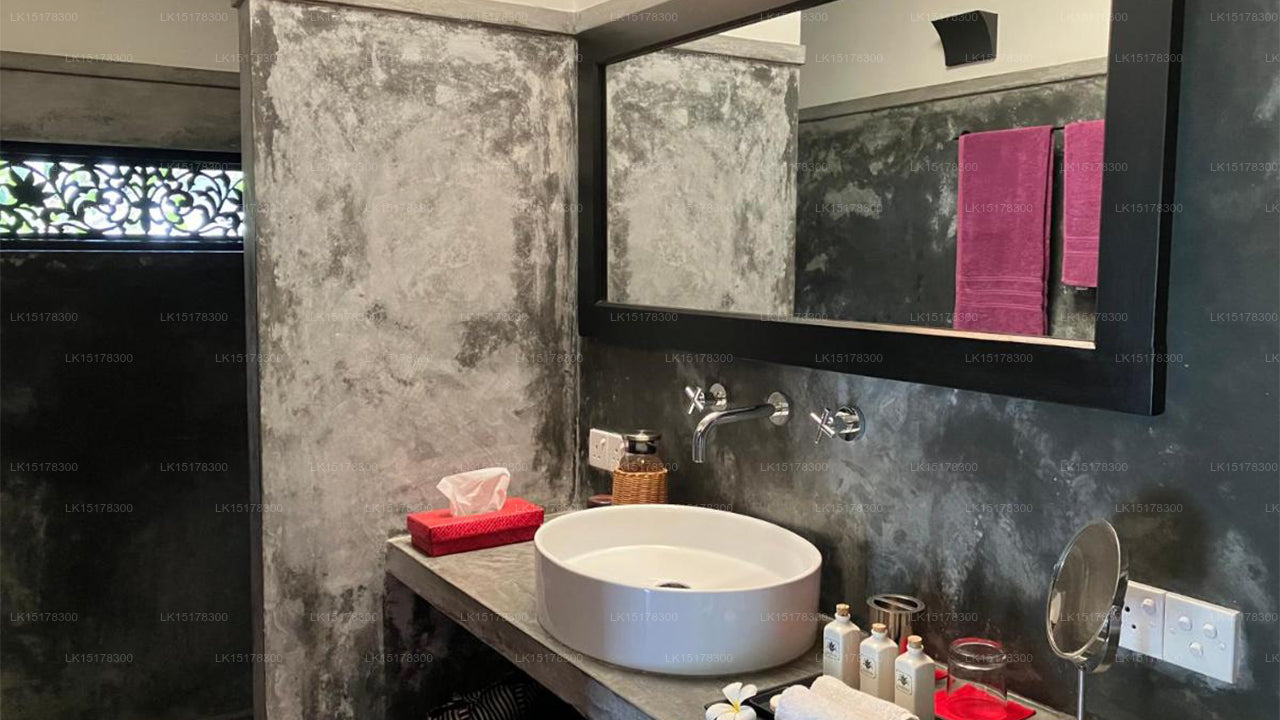 The property features three elegant bungalows, each named after Don Hendrick’s sons: Santeen, Henry, and David. These bungalows are designed to provide privacy and comfort, featuring spacious verandas with ceiling fans, four-poster beds with luxury pocket-sprung mattresses, mosquito nets, and ceiling fans. The en-suite bathrooms are equipped with rainfall showers, toilets, bidets, hair dryers, and Spa Ceylon toiletries. Additional amenities include a minibar, personal safe, tea-making facilities, Nespresso coffee machines, and complimentary fiber internet access.