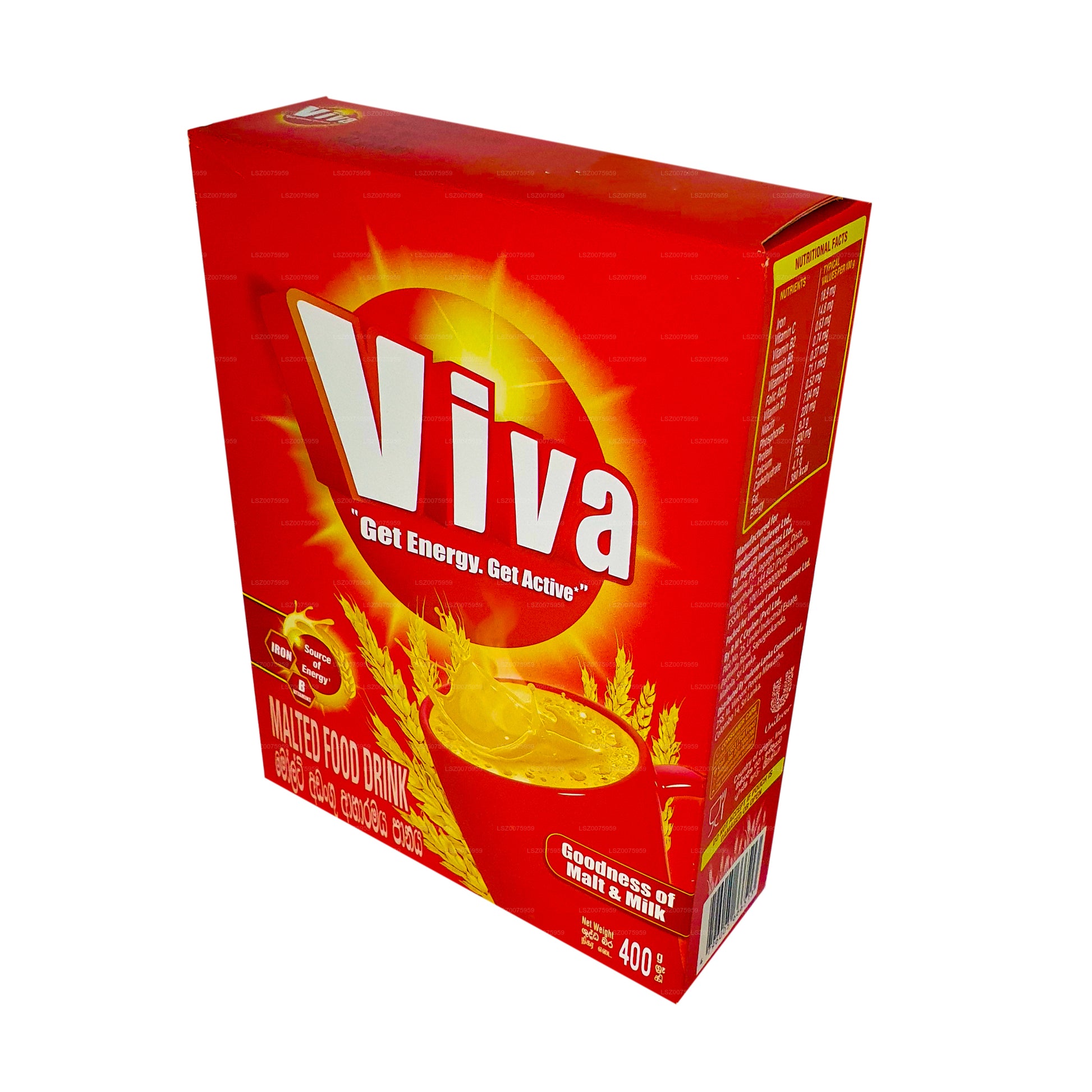 Любимый всеми солодовый напиток Viva, имя которого в Шри-Ланке известно всем, сочетает в себе все преимущества солода и молока в одном мешочке. Предлагая мгновенный заряд энергии, Viva обещает вам быть активными в течение всего дня. Этот солодовый пищевой напиток со сливочным вкусом содержит множество питательных веществ, включая витамины B1, B2, B3, витамин C, железо, кальций и фосфор. Viva пьют в сочетании с чашкой цейлонского чая, благодаря чему напиток становится гуще и идеально подходит для всей семьи. Рекомендуется каждый раз использовать сухую ложку, а после извлечения из упаковки хранить содержимое в герметичном контейнере.