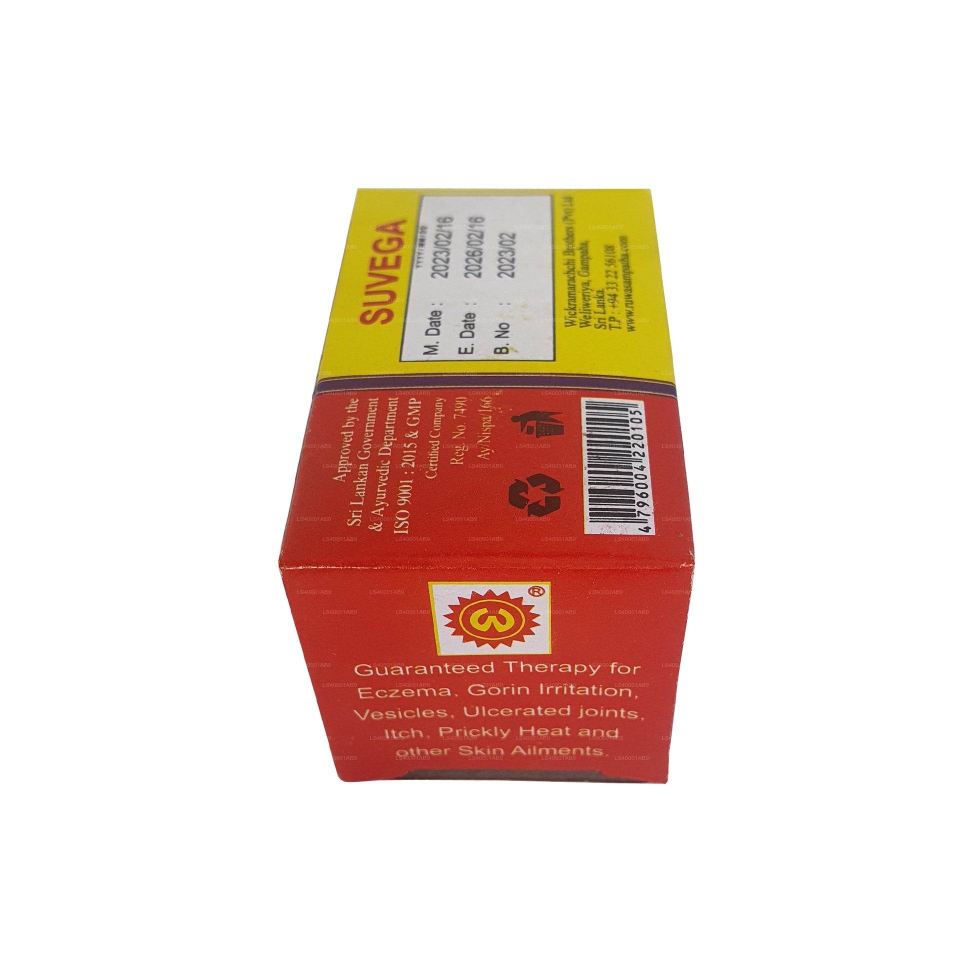 Wickramarachchi Labs Suwega is known to be effective for a number of skin conditions such as eczema, groin irritation, vesicles, itches, prickly heat, ulcerated joints, crack and infected feet, pimples as various marks and other skin diseases. There has been no reported side effects, but if you are new to Ayurvedic products or currently undergoing any type of medication, kindly consult a phycician before use.